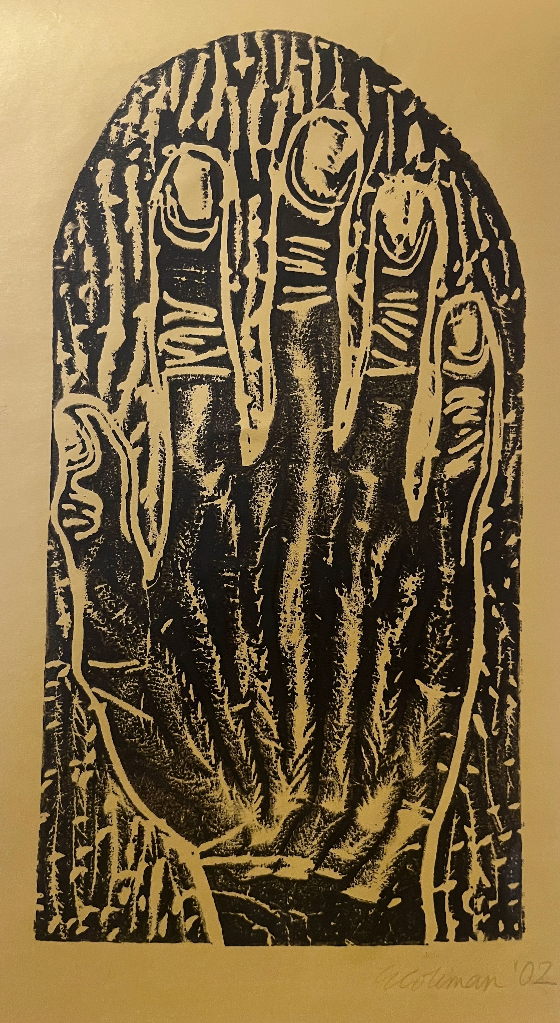 We will make a tracing of our hand(s) to either transfer and engrave onto styrofoam or cut out of cardstock to build a collagraph plate. We will be able to print on papers and tea towels, positioning the plates, even folding them into gestures or sharing our hands with other participants.